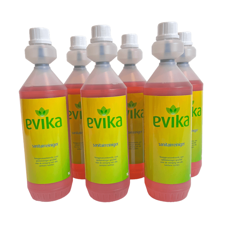 Evika sanitairreiniger 6x1L is de voordeelset voor zakelijke gebruikers.