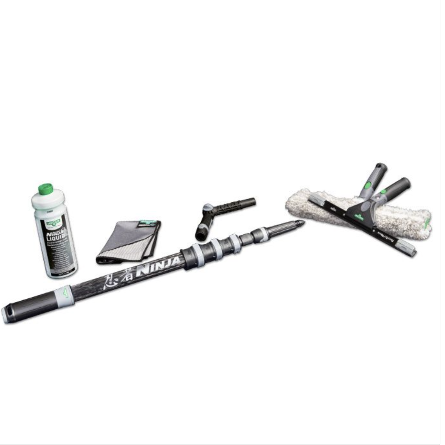 De NINJA 6-in-1 Carbon Steel Kit is een complete set voor professionele glasbewassing, samengesteld uit zes onderdelen uit de premium range van Unger. Alles is op elkaar afgestemd voor dagelijks gebruik door glazenwassers en particulieren die gaan voor kwaliteit.