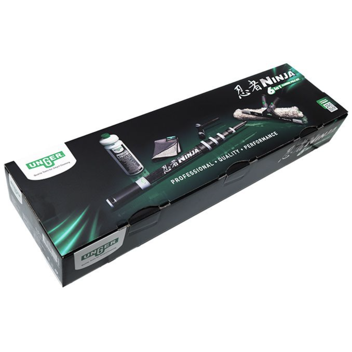 Unger Ninja 6 in 1 set met carbon telescoopsteel AKN19. complete set premium kwaliteit glasbewassingsproducten in een luxe doos.